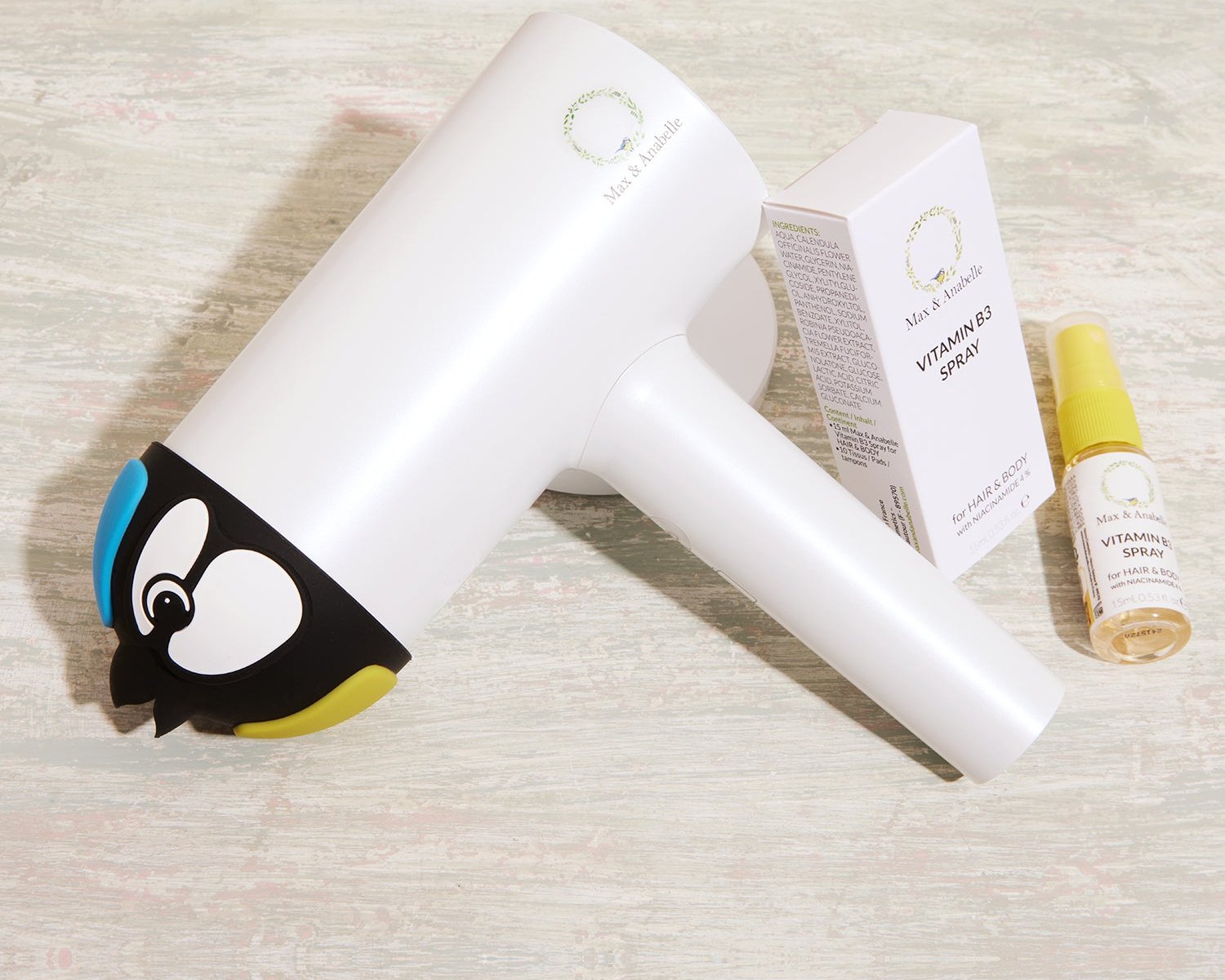 Et l'adaptateur de tête en silicone laisse passer l'air chaud mais ne se chauffe pas, ce qui évite les brûlures en cas de contact des petits doigts.
